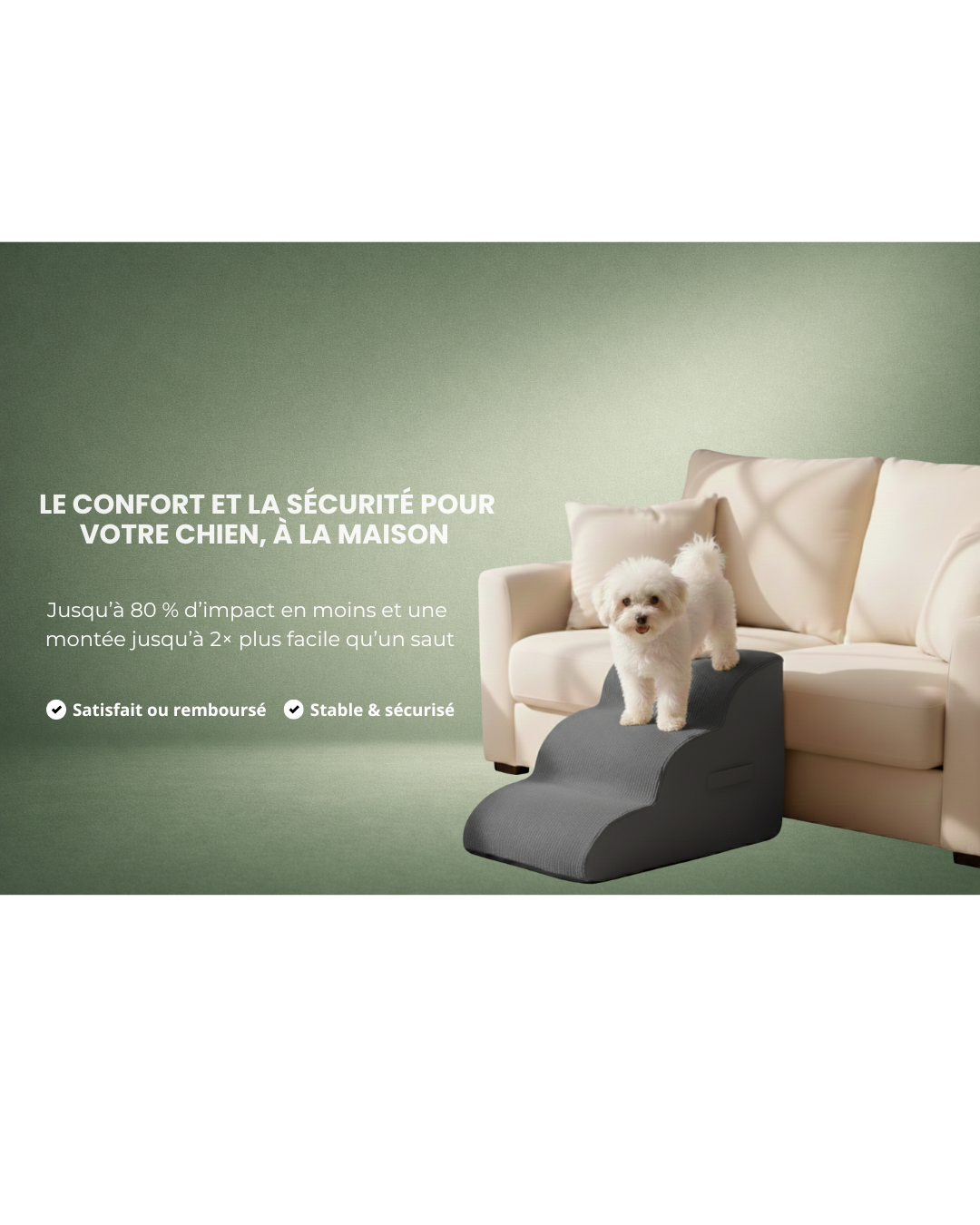 Canapé, lit, fauteuil… tout ce qui est “trop haut” pour votre chien. C’est la solution simple pour qu’il reste proche de vous en toute sécurité.
