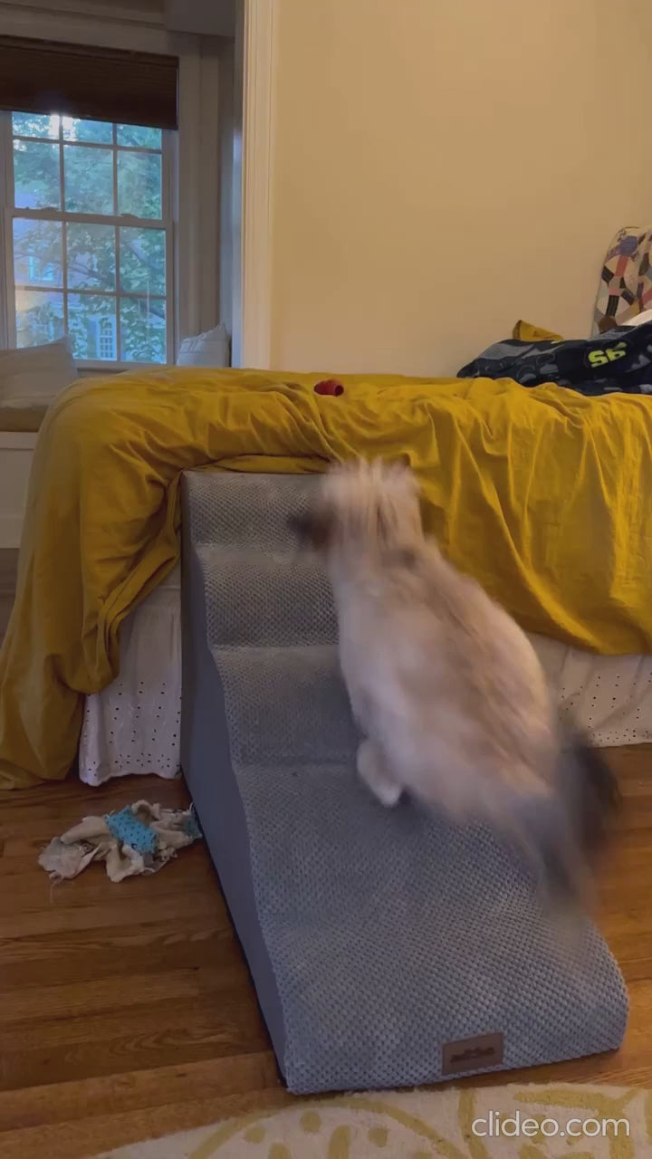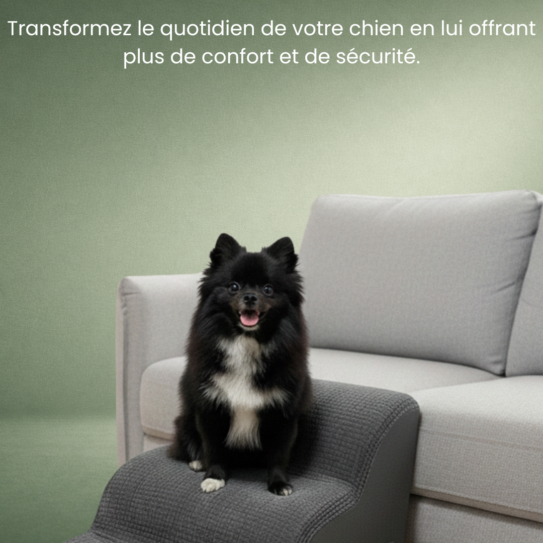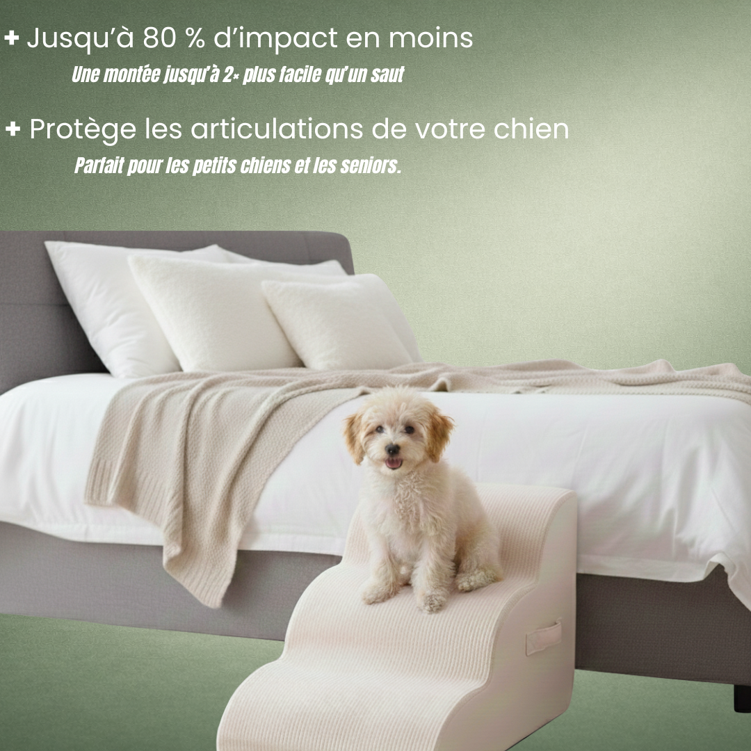 Cet escalier est conçu pour tous les chiens qui ont du mal à monter : petits chiens, chiens seniors, chiens en convalescence, ou simplement ceux qui hésitent à sauter sur le canapé ou le lit. Il aide votre chien à gagner en autonomie, en toute sécurité.